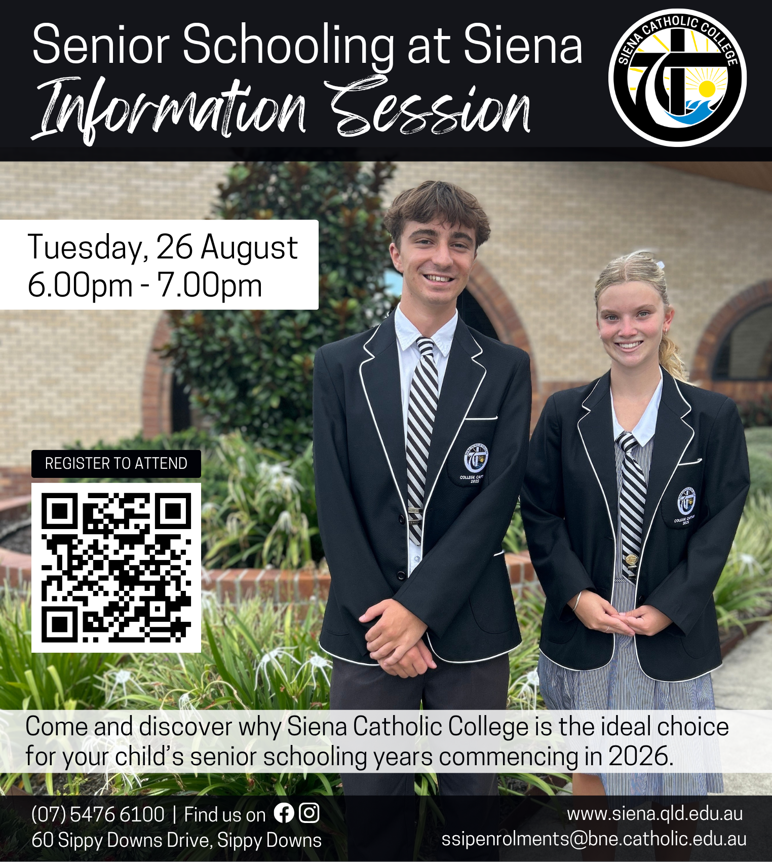 🔗 Register your attendance - Senior Schooling at Siena in 2026 Information Evening.