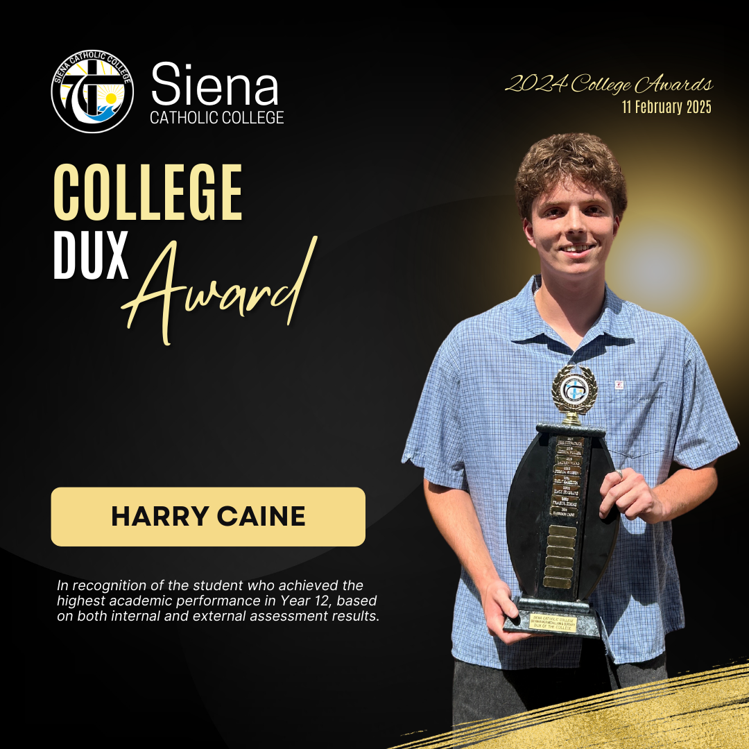Throughout Harry's time at Siena Catholic College, he demonstrated an incredible work ethic and dedication to his studies while remaining connected to the college community through his consistent involvement and participation in all facets of College life. We wish Harry all the best in his post-high school studies.
