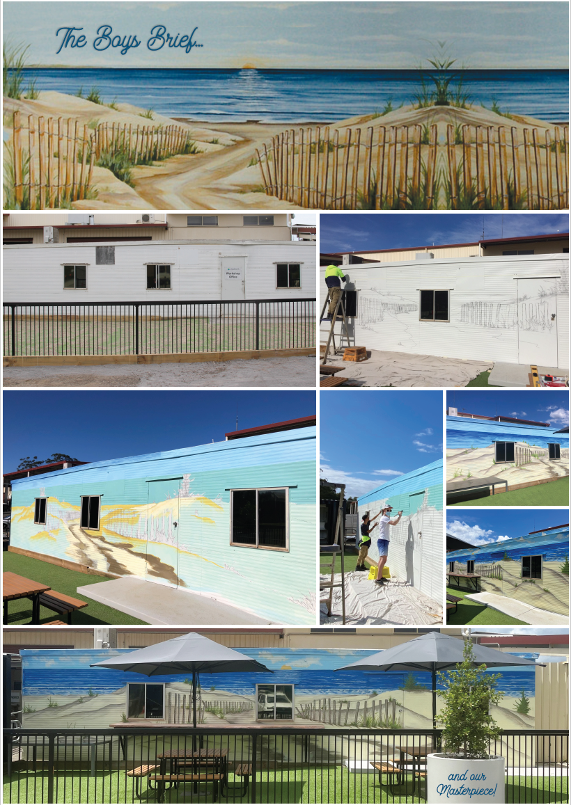 At the end of last year students, Christopher Dickens and Xavier Johansen (both now in Year 12) were selected by their Visual Art teacher Mr Nick Robba to paint a beach access mural for Shadforth’s employee breakout area at their Forest Glen work location. The boys did a phenomenal job and Shadforth staff are very grateful for the end result.