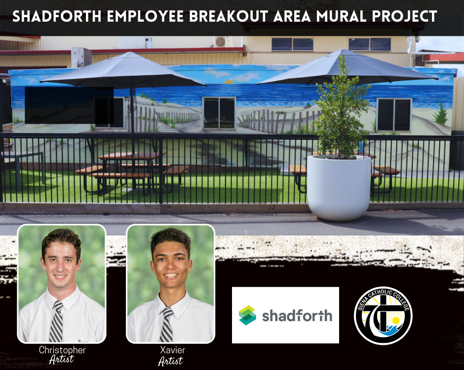 Both Christopher and Xavier spent countless hours of their own time during school holidays and on the weekends completing this project for us. Their passion for art, commitment to long hours in the sun and their dedication to providing a professional service was a credit not only to themselves, but to Siena Catholic College as well. Both Christopher and Xavier should be extremely proud of what they have produced because Shadforth certainly are!